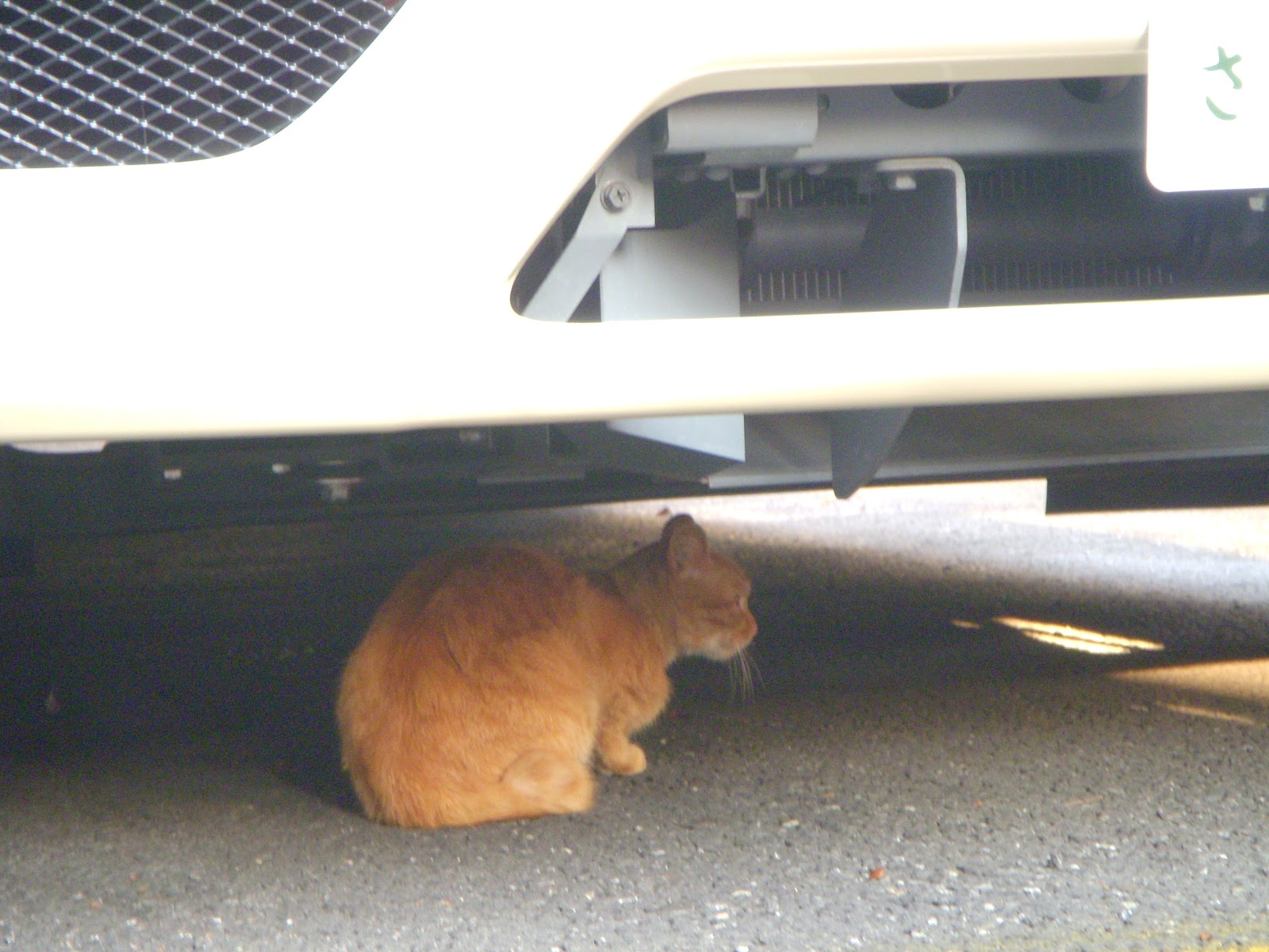 散歩で見かける猫ちゃんとバスの下のハイエナ君